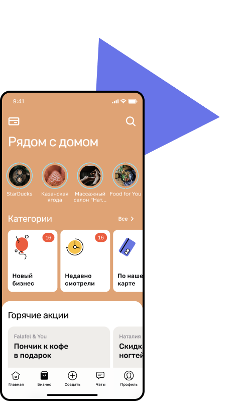 Вы получаете акционные предложения от бизнеса и можете на прямую доносить важную информацию до представителей