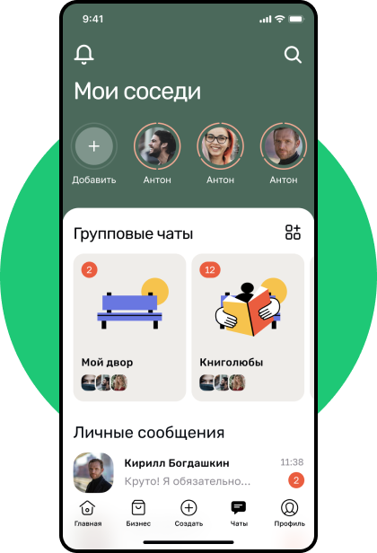 узнавайте, кто живет рядом, вместе с Локоло и общайтесь с соседями в групповых чатах по интересам
